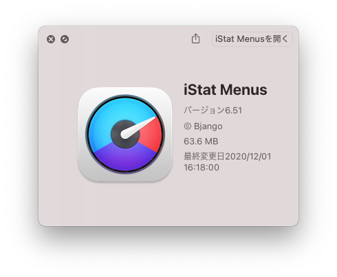 最近時間があったので、HDDを初期化してOSの新規インストールをしてみることにしました。High Sierraから再度Big Surまで上げて、動作を確認すると、サクサク動くではありませんか。メインマシンのMacbookPro 16インチからユーザ情報等を移行し(2,3時間かかりました😅💦)、起動してみると、また動作が遅くなっているではありませんか。ブート中の動きを見ていると、「iStat Menus」のロード時に時間がかかっているようだったので、思い切ってアンインストールしてみると、新規インストール直後のサクサク感が戻りました。