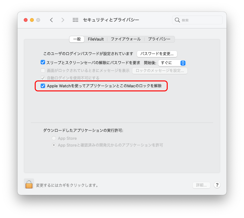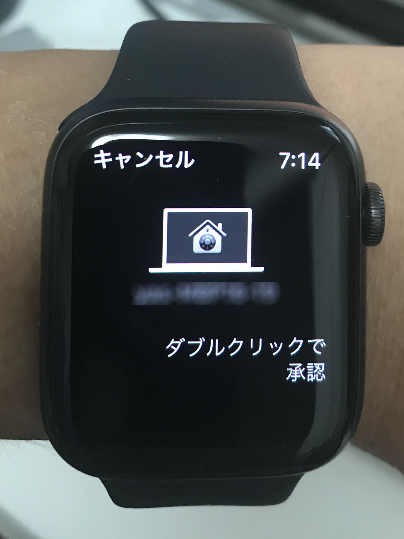 「Apple Watchを使ってアプリケーションとこのMacのロックを解除」にチェックを入れておくと、鍵のアイコンをクリックした際に、Apple Watchには次のように表示されます。