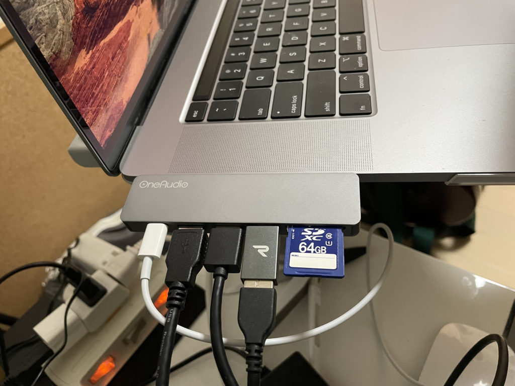しかし、また外付けHDDが増えたのでMacbook ProのThunderboltのポートは写真のような状態になってしまいました。