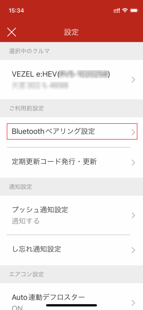 この「ペアリング設定する」ボタンを押すだけでした。ペアリングが完了すれば、PINコードが正常に送信され、ヴェゼルを起動することができました。以上、ご報告まで。